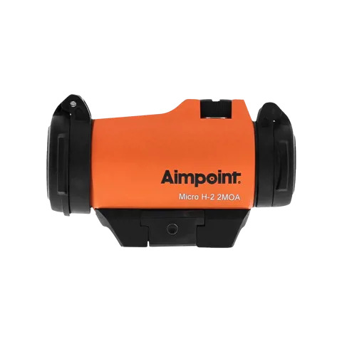 Lieferumfang: Aimpoint Micro H2 Orange Leuchtpunktvisier 2 MOA, Standard-Montage für Weaver/Picatinny, Flip-up-Abdeckungen, Batterie
