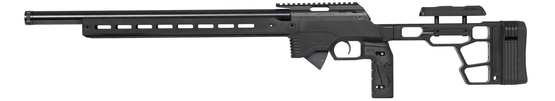 Das 1761 APR GEN2 Black ACC Gen2 ist ein hochmodernes Kleinkalibergewehr, das speziell für PRS-Wettkämpfe im Kaliber .22 l.r. konzipiert wurde. Es kombiniert das präzise Anschütz 1761 System mit dem weiterentwickelten ACC GEN2 Chassis von MDT eine Plattform, die durch maximale Stabilität, hohe Steifigkeit und modulare Anpassungsfähigkeit überzeugt. Das Chassis wurde mit einem höheren Barrikadenstopp und einem breiteren, starreren Vorderschaft optimiert perfekt für dynamische Schießsituationen. Das Herzstück bildet der zuverlässige 1761 Verschluss mit symmetrischer 3-Warzenverriegelung und QPQ-Beschichtung, der durch einen besonders leichtgängigen Schlossgang und einfache Pflege besticht. Für höchste Schussgenauigkeit sorgt der Direktabzug 5061 D APR, werksseitig auf 750?g eingestellt, und flexibel bis auf 1.200?g regulierbar. Die ab Werk montierte 30 MOA Picatinny-Schiene ermöglicht eine präzise Montage von Zieloptiken, während der 560 mm Lauf mit M18x1 Gewinde die Nutzung von Zubehör wie Schalldämpfern erlaubt. Ein robuster 10-Schuss-Magazin aus Edelstahl und Aluminium mit griffigem Magazinboden ergänzt das Set und bietet optimale Handhabung auch bei widrigen Bedingungen. Mit seinem durchdachten Gesamtkonzept ist dieses Modell die ideale Wahl für ambitionierte Schützen, die Leistung, Präzision und Zuverlässigkeit suchen.