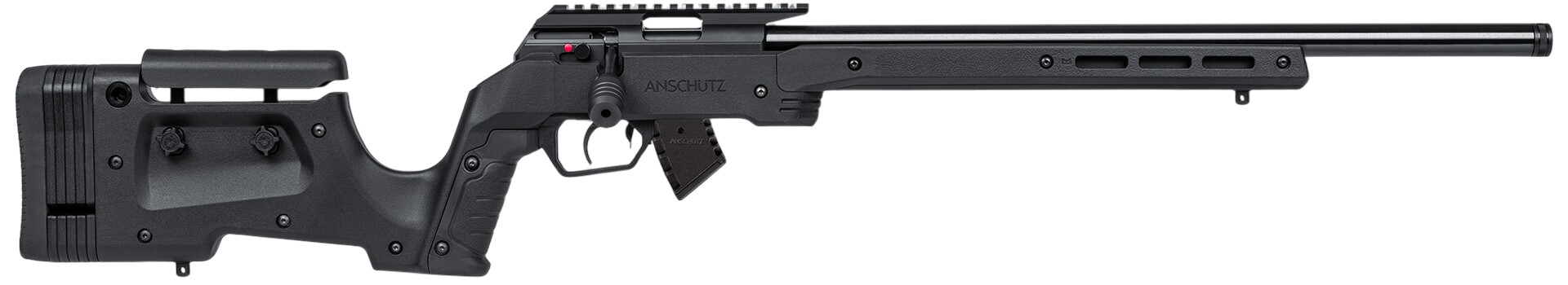 Entwickelt für PRS-Disziplinen im Kleinkaliberbereich Ergonomisches MDT XRS Chassis für optimale Kontrolle Hochpräzises System aus der ANSCHÜTZ Schmiede Dreiwarzen-Verschluss für zuverlässige Verriegelung Werkseitig fein eingestellter Matchabzug (750 g) Kaliber: .22 l.r.