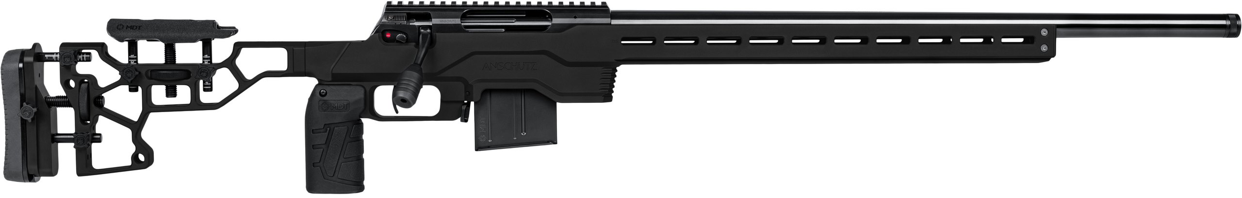 ANSCHÜTZ 1782 APR System im MDT ACC PREMIER Chassis, Kunststoff Gewehrkoffer MEGA PLUS, 10-Schuss Stahl-Magazin (AICS), 660 mm Lauf mit M18x1-Gewinde, einstellbarer Match-Druckpunktabzug oder Match-Direktabzug, Qualitätskontrollkarte.