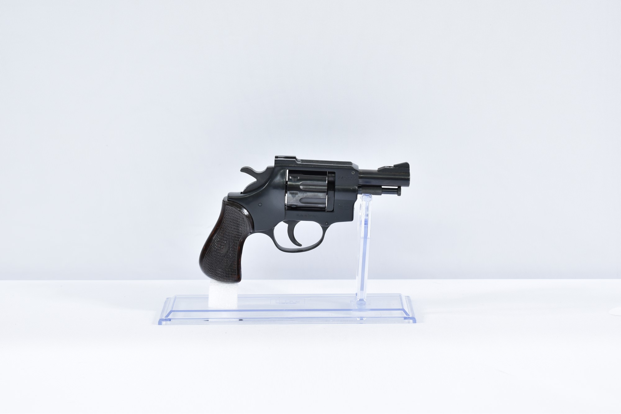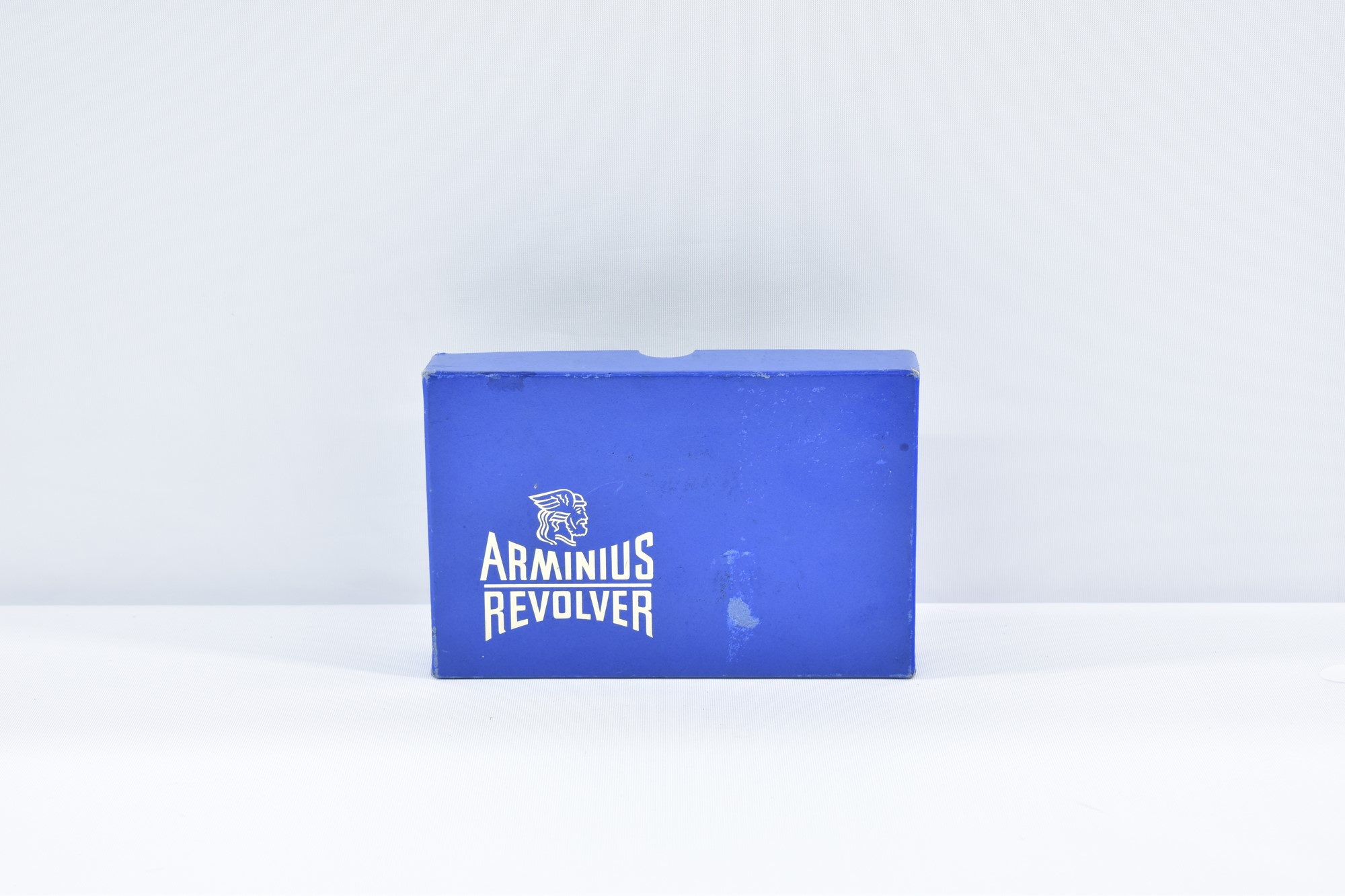 Dieser Arminius HW3 im Kaliber .22 WinMag ist ein kompakter Revolver mit einer Gesamtlänge von 18 cm und einer Lauflänge von 7 cm. Das Gewicht beträgt 730 g, und die Magazinkapazität liegt bei 8 Schuss. Der Zustand wird mit 3 bewertet, was deutliche Gebrauchsspuren und eine moderate bis hohe Schussbelastung bedeutet. Die Griffschalen bestehen aus Kunststoff, und der Revolver wurde 1976 beschossen.