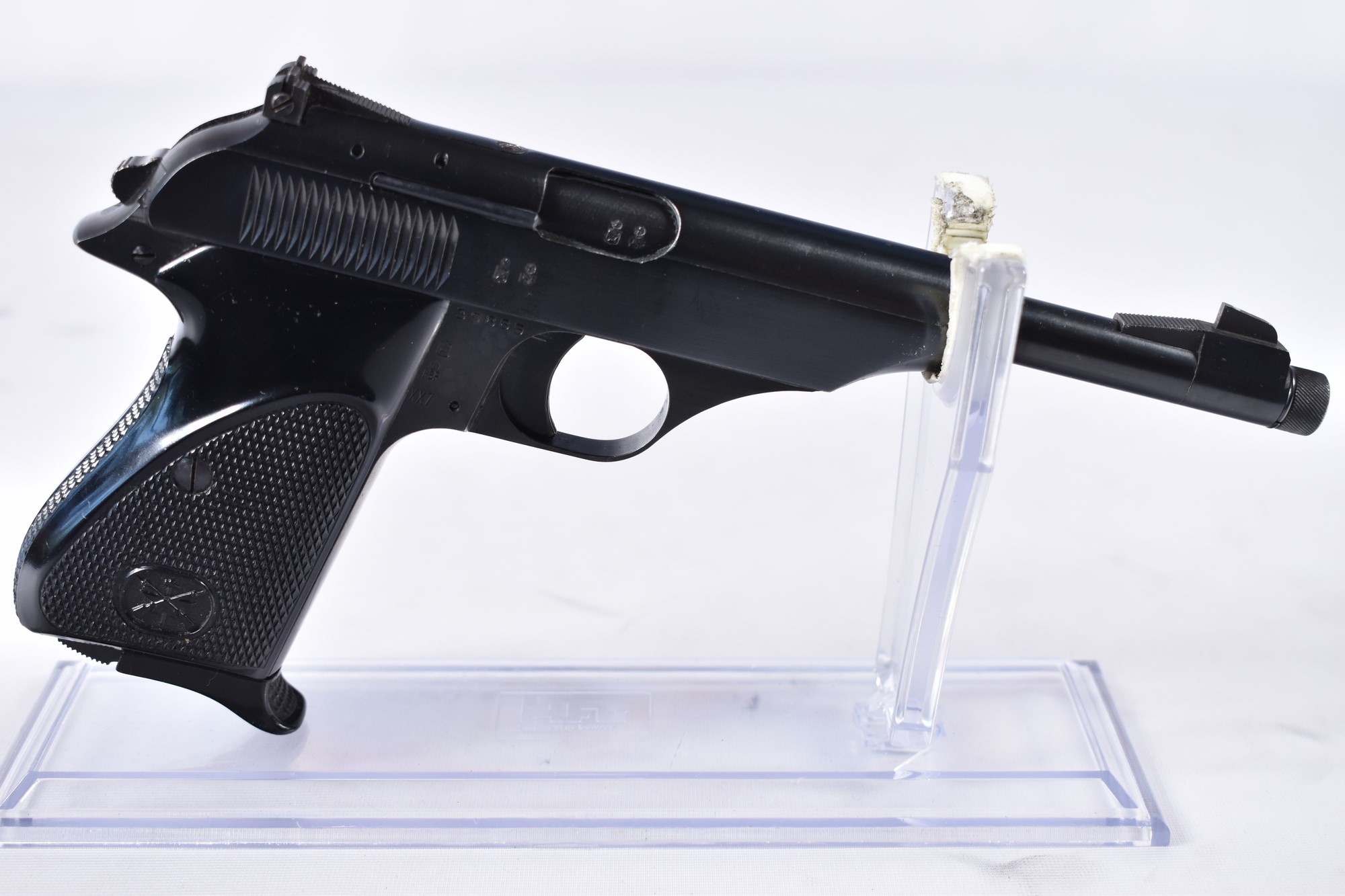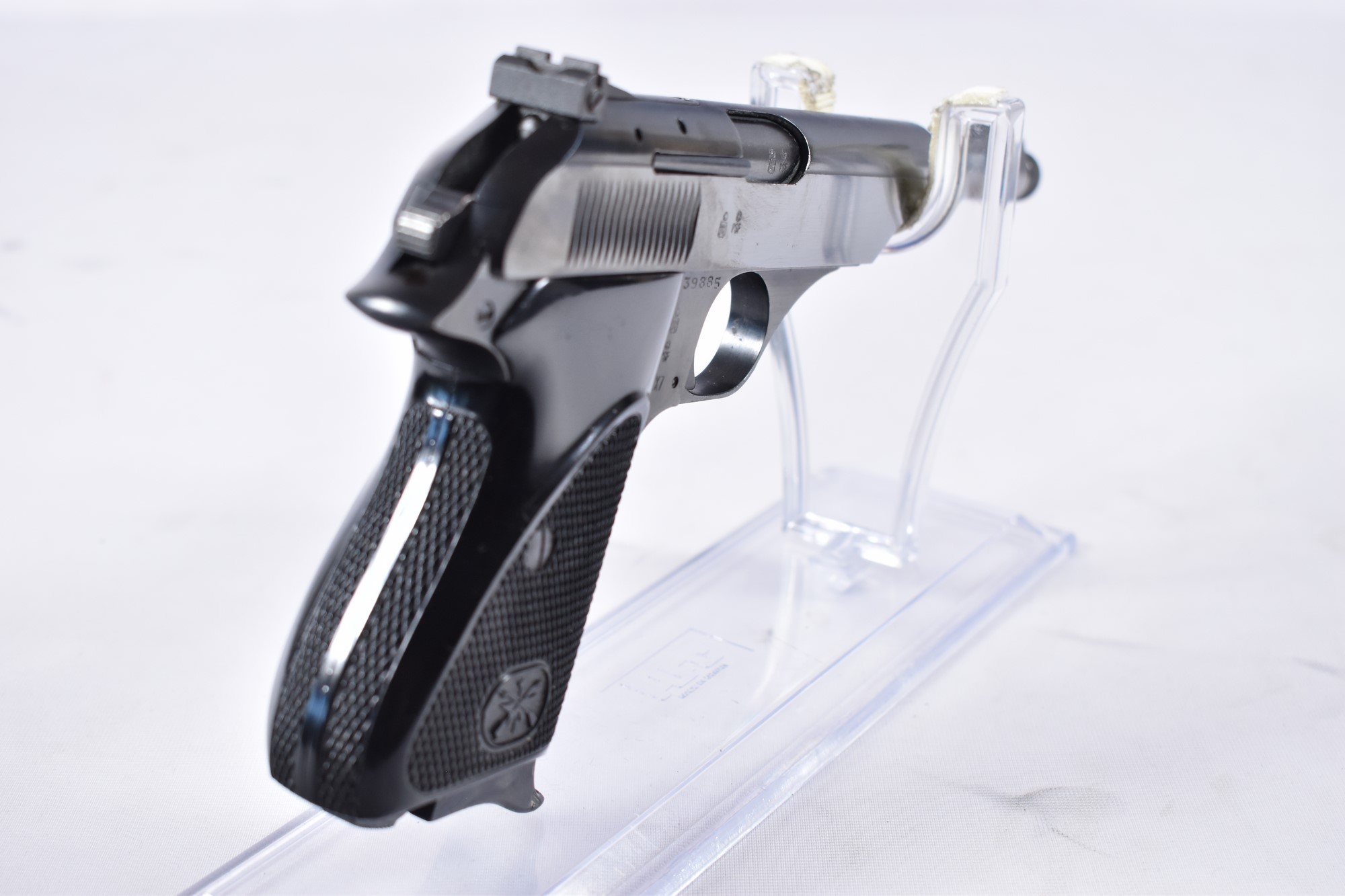 Diese Bernadelli 60 Pistole im Kaliber .22lr hat eine Lauflänge von 12,4 cm und einen Zustand von 2-3, was bedeutet, dass sie normale Gebrauchsspuren mit mittelstarken Dellen und/oder leichten Kratzern aufweist. Die Pistole wird inklusive drei Magazinen geliefert.
