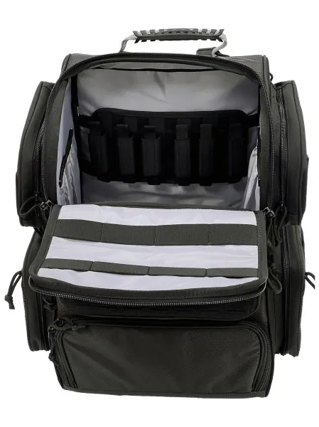 Der Rucksack verfügt über ein geräumiges oberes Fach sowie ein großes unteres Fach, das für Munition und bis zu drei Pistolen ausgelegt ist. Für noch mehr Platz kann das Hartschalen-Innenfach im unteren Bereich entfernt werden, wodurch ein tiefes Stauraumfach entsteht. Außen befinden sich mehrere große Taschen und Klettflächen, die zusätzliche Molle-Taschen aufnehmen können. Das helle Silberfutter im Inneren sorgt dafür, dass sich Gegenstände selbst bei schlechten Lichtverhältnissen leicht finden lassen.