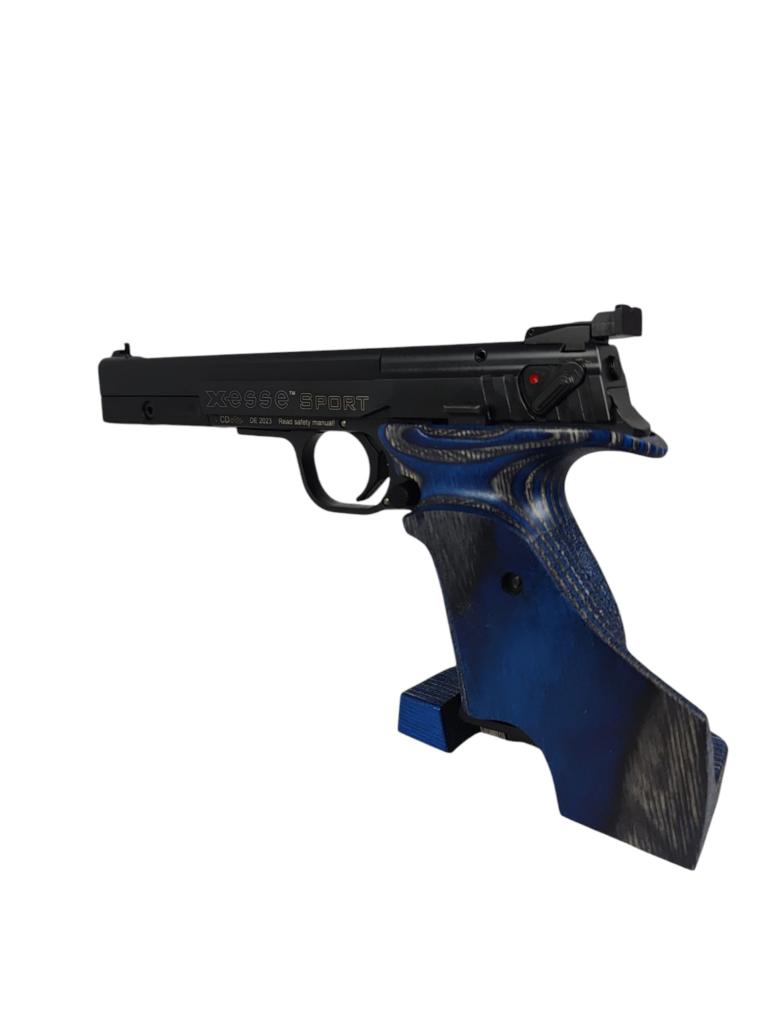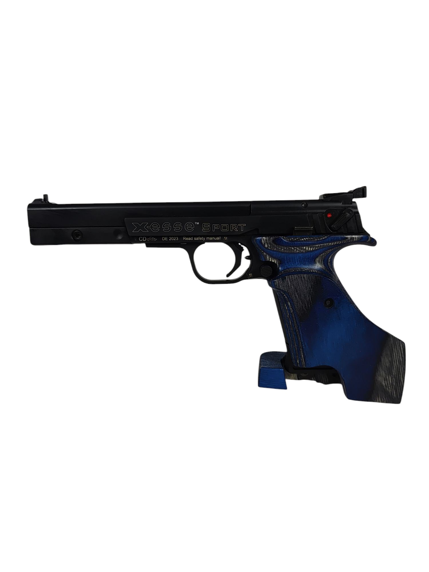 Die Hämmerli Pistole X-ESSE Sport SF Black überzeugt durch ein modernes Design und hochwertige Verarbeitung. Der Verschluss wurde mittels des innovativen Tenifer®-Verfahrens gehärtet, was für maximale Korrosions- und Verschleißfestigkeit sorgt. Dies garantiert eine lange Lebensdauer und steigert den Wert der Pistole. Der ergonomisch geformte, einstellbare Schichtholz-Matchgriff passt sich optimal den Bedürfnissen des Schützen an und bietet besten Halt. Ergänzt wird das Design durch das edle schwarze Finish, das einen zeitlosen und selbstbewussten Look vermittelt. Die Pistole verfügt über eine einstellbare Mikrometer-Visierung und einen präzisen Druckpunktabzug, was eine hohe Treffergenauigkeit ermöglicht. Dank ihrer durchdachten Konstruktion ist die Waffe sowohl für sportliche Wettbewerbe als auch für das Training hervorragend geeignet.
