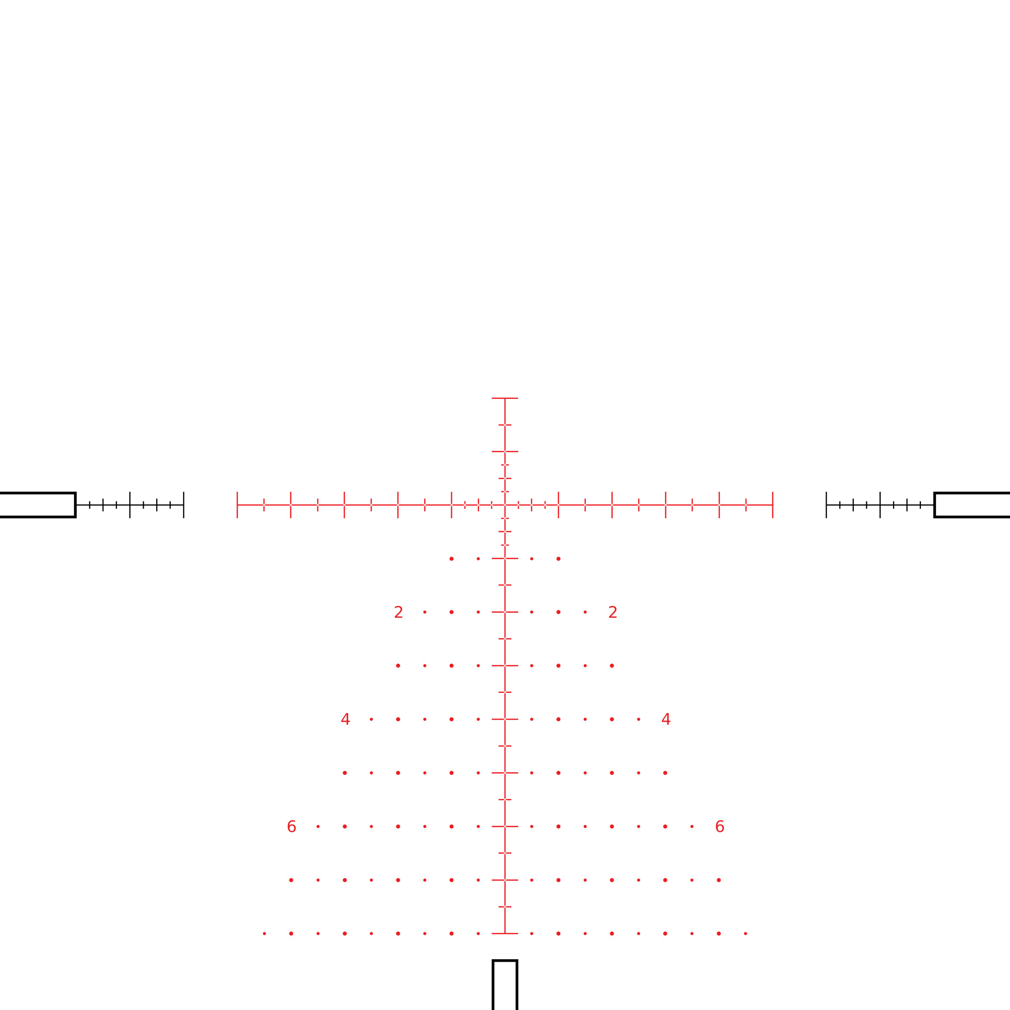 - 6-stufig beleuchtetes Absehen (Rot) mit feinem Einstellraster