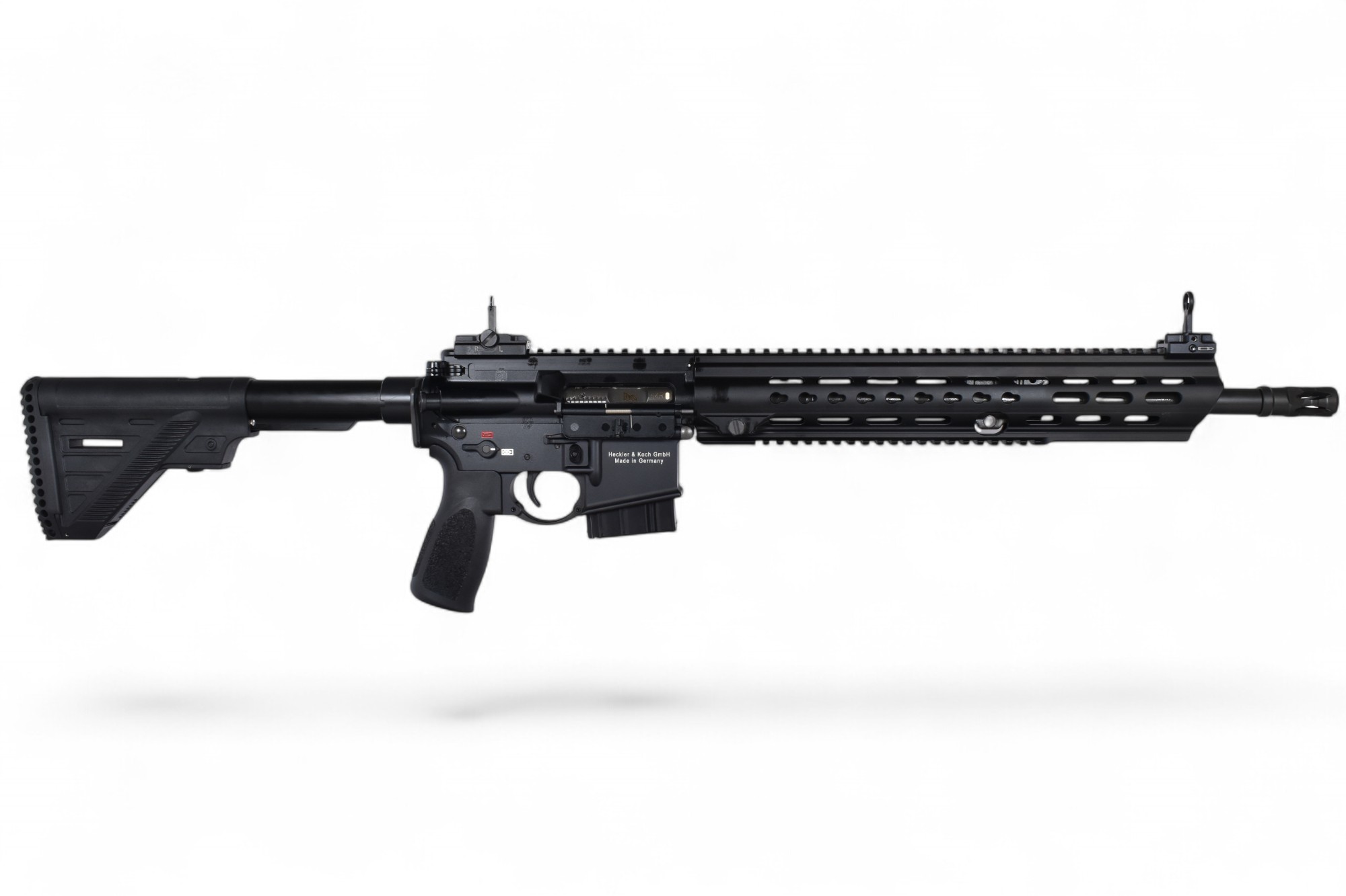 Die Heckler & Koch MR223 A3 Slimeline 16,5 Zoll mit langem Handschutz überzeugt durch seine herausragende Funktionssicherheit und ist für militärische Einsatzzwecke entwickelt worden. Das bewährte Gassystem sorgt für eine zuverlässige Funktionalität selbst unter extremen Bedingungen. Dank des speziellen Antriebssystems werden Schmutzablagerungen auf ein Minimum reduziert, was die Wartung vereinfacht und die Langlebigkeit des Gewehrs erhöht. Ein freischwingender Lauf ermöglicht eine hohe Präzision, während der Slim Line Handschutz mit HKey-Schnittstellen für eine verbesserte Handhabung sorgt. Der Lauf ist hartverchromt, was ihn besonders widerstandsfähig macht. Zudem verfügt das MR223A3 über eine sechsstufig längenverstellbare Schulterstütze, die sich an die Bedürfnisse des Schützen anpassen lässt.