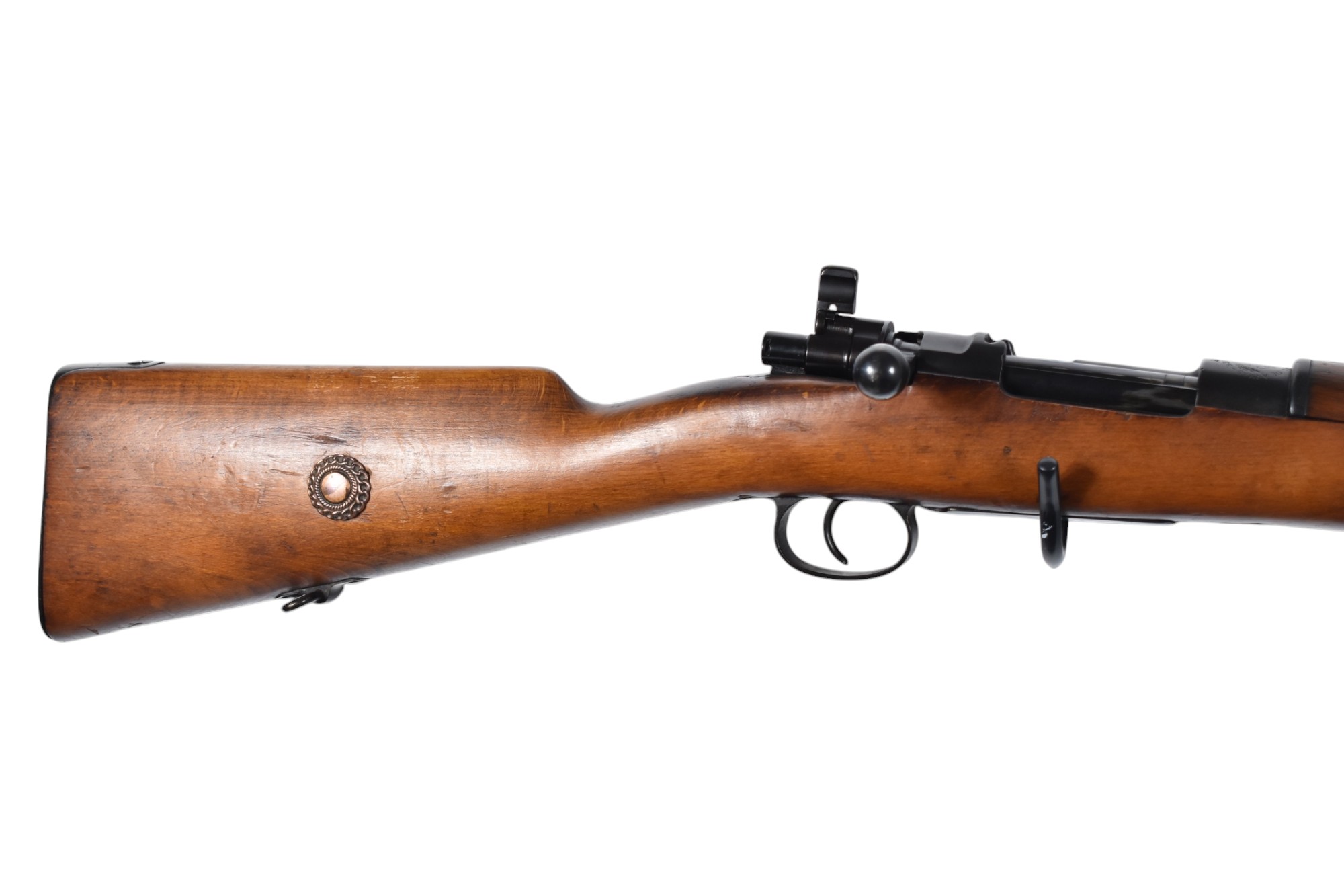 Dieser Hege 1933 Repetierer im Kaliber 7×57 hat eine Gesamtlänge von 123 cm, eine Lauflänge von 75 cm und eine Schaftlänge von 34 cm. Mit einem Gewicht von 4,2 kg bietet die Waffe eine stabile Handhabung. Der Zustand wird mit 3 angegeben, was auf deutliche Gebrauchsspuren wie stärkere Dellen oder Kratzer an der Brünierung hinweist. Die Mechanik ist für den jagdlichen Einsatz weiterhin funktionsfähig.