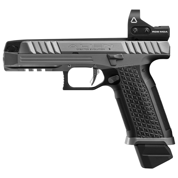 Die LAUGO Arms Alien FullKit zählt zu den technisch außergewöhnlichsten Sportpistolen auf dem modernen Waffenmarkt und wurde konsequent für den dynamischen IPSC-Schießsport entwickelt. Besonders in der Production-Klasse spielt eine schnelle Schussfolge eine entscheidende Rolle genau hier setzt das innovative Konzept dieser Pistole an. Durch ihre hochwertige Verarbeitung aus präzise gefrästem Stahl und ein Griffmodul aus Aluminium verbindet sie enorme Stabilität mit einer hervorragenden Ergonomie.