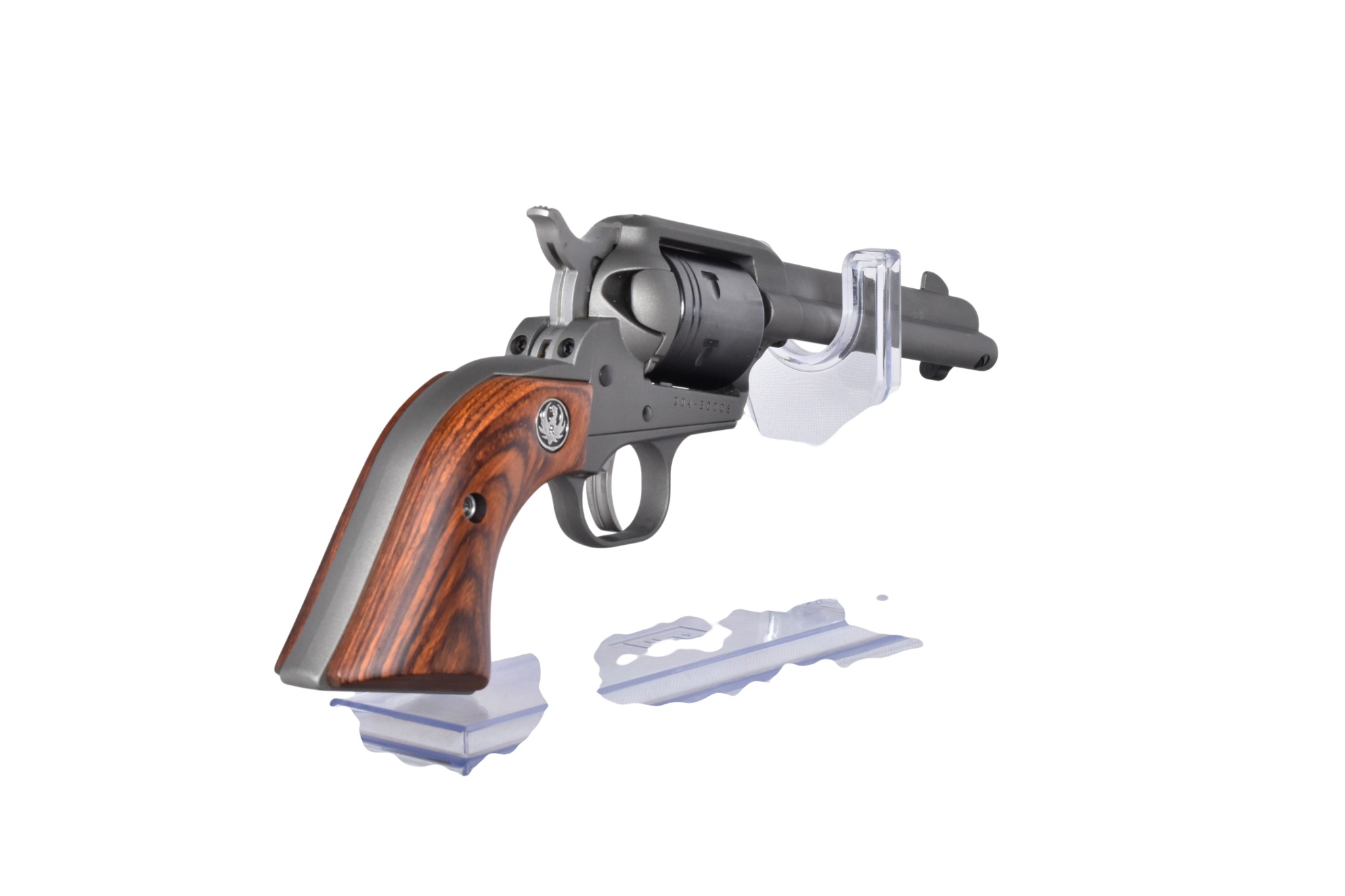 Dieser Ruger Wrangler im Kaliber .22lr ist ein moderner Single-Action-Revolver mit klassischem Design und robuster Bauweise. Die Lauflänge beträgt 11 cm (4,62 Zoll), und das Rahmenfinish ist in einem attraktiven Silberton ausgeführt. Die Waffe bietet einfache Bedienung und ist ideal für Einsteiger oder Freizeit-Schützen geeignet.