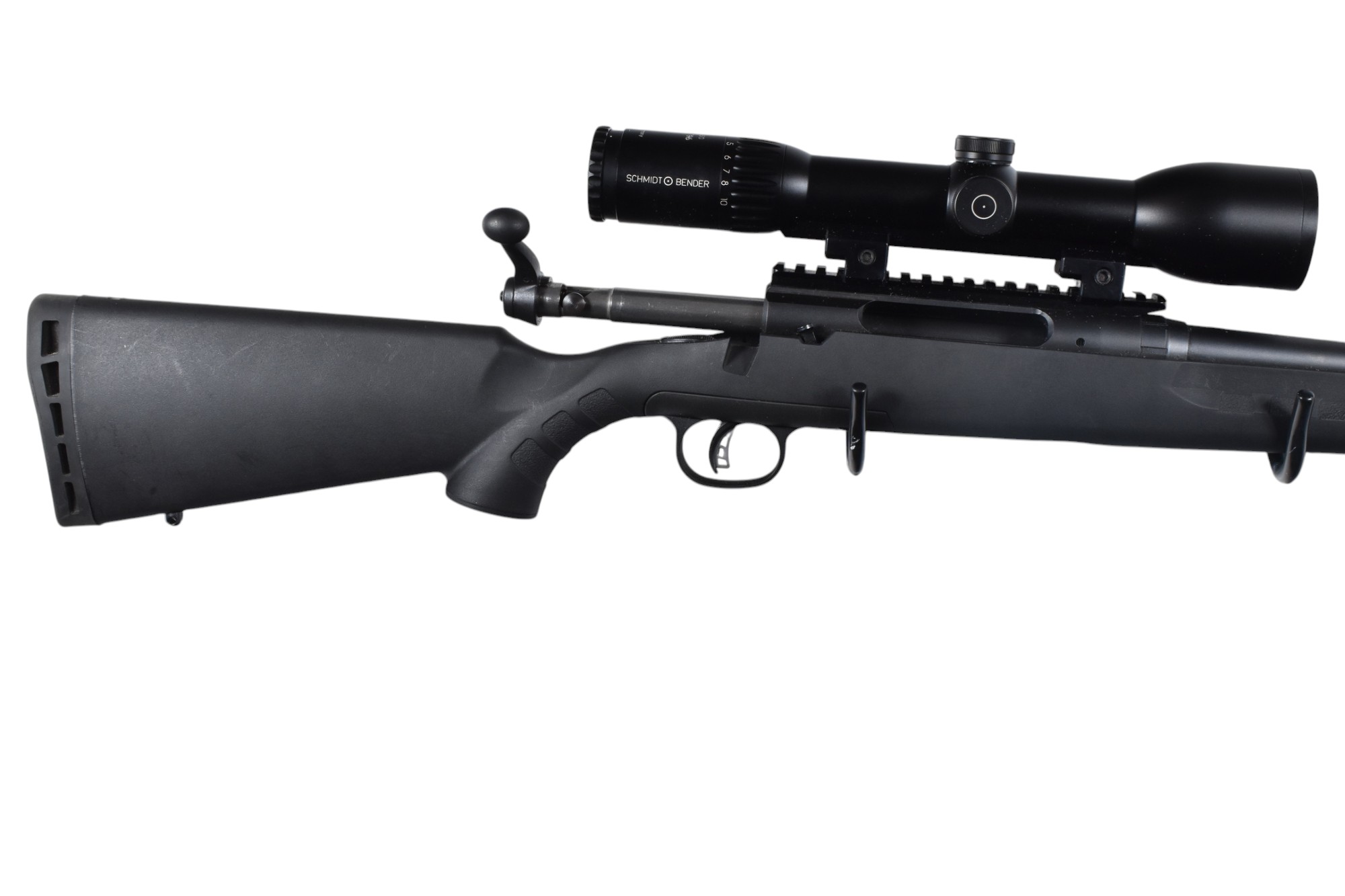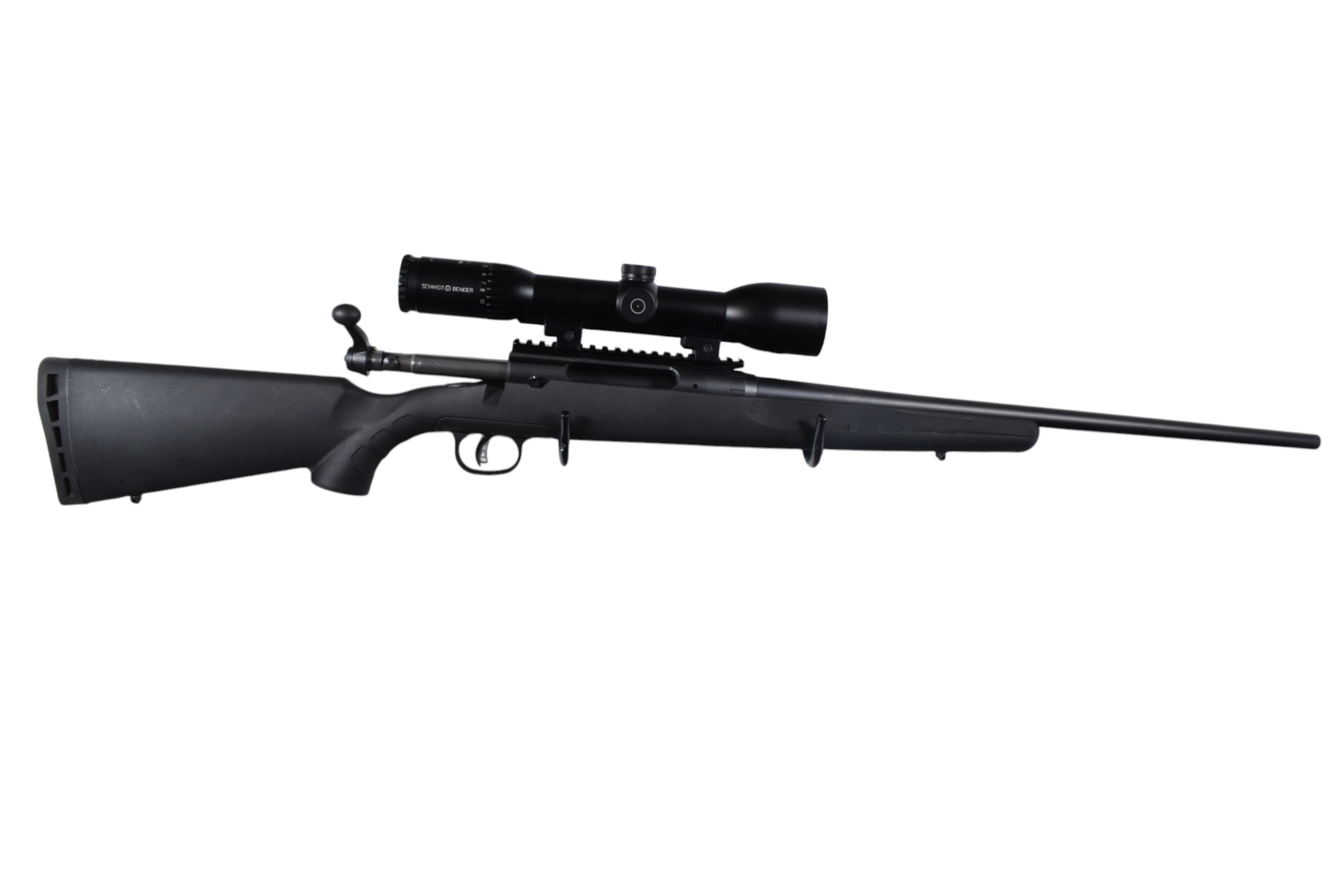 Lieferumfang: Savage Axis Repetierbüchse, Schmidt & Bender Polar T96 2,5-10×50 mit Absehen 4 und Schiene