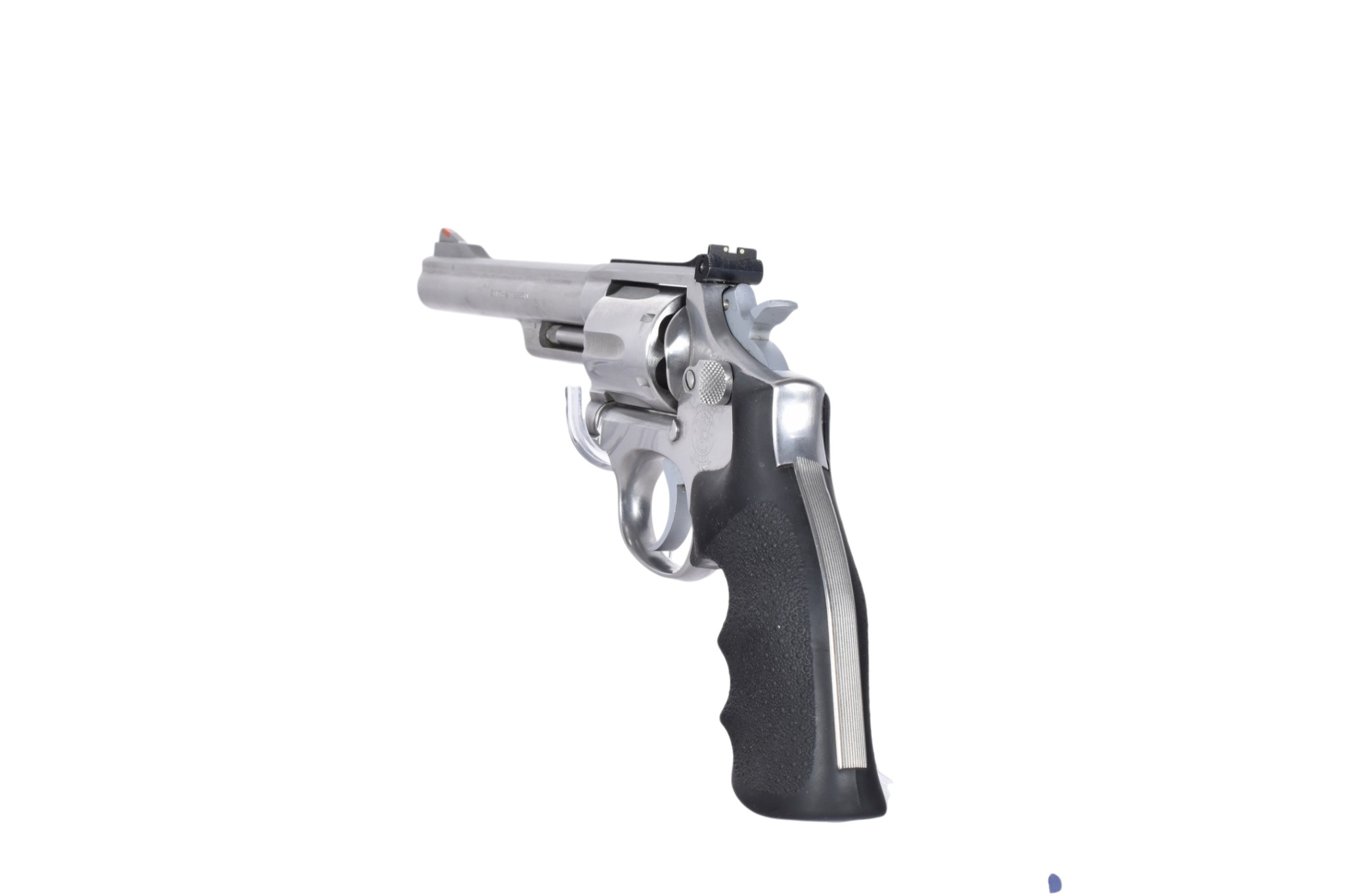 Dieser Smith & Wesson Revolver im Kaliber .357 Mag, Modell 66-2, verfügt über eine Gesamtlänge von 32 cm und eine Lauflänge von 6 Zoll. Der Revolver befindet sich im Zustand 2, was normale Gebrauchsspuren bedeutet. Dazu zählen unter anderem leichte bis mittelstarke Dellen an den Griffschalen sowie leichte Kratzer an der Brünierung bei normaler Schussbelastung. Diese Zustandsbeschreibung gilt als generelle Einschätzung und es ist möglich, dass nicht alle beschriebenen Merkmale in vollem Umfang zutreffen oder weitere Gebrauchsspuren vorhanden sind. Das Beschussjahr ist unbekannt.
