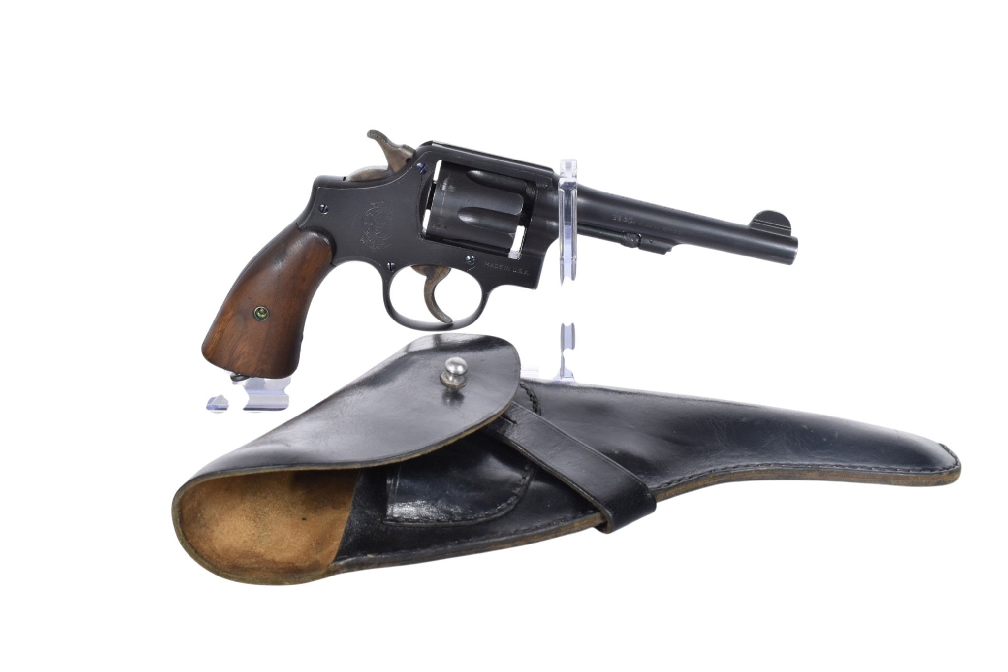 Dieser Smith & Wesson Revolver Modell Victory im Kaliber .38 Special verfügt über eine Lauflänge von 5 Zoll und eine Gesamtlänge von 28,5 cm. Der Revolver befindet sich im Zustand 2, was auf normale Gebrauchsspuren hinweist. Dazu zählen leichte bis mittelstarke Dellen an den Griffschalen sowie mögliche leichte Kratzer an der Brünierung bei normaler Schussbelastung. Diese Zustandsbewertung gilt als generelle Einschätzung, es müssen nicht alle beschriebenen Merkmale zwingend vorhanden sein.