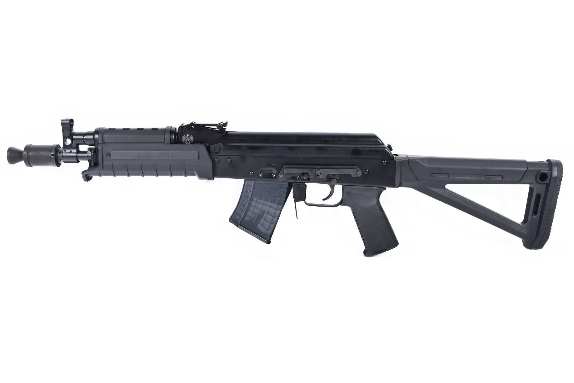 Die wetterbeständige Polymerschäftung von Magpul verleiht der Waffe Stabilität, während die Mündungsbremse auf das Standard-AK-Mündungsgewinde passt, um den Rückstoß zu reduzieren und die Schussgenauigkeit zu erhöhen. Eine seitliche PSO-Schiene ermöglicht das Anbringen von Optiken, um das Gewehr nach den eigenen Bedürfnissen anzupassen. Die vergrößerte Sicherung erleichtert die Bedienung, was besonders im Einsatz von Vorteil ist. Sportlich zugelassen!